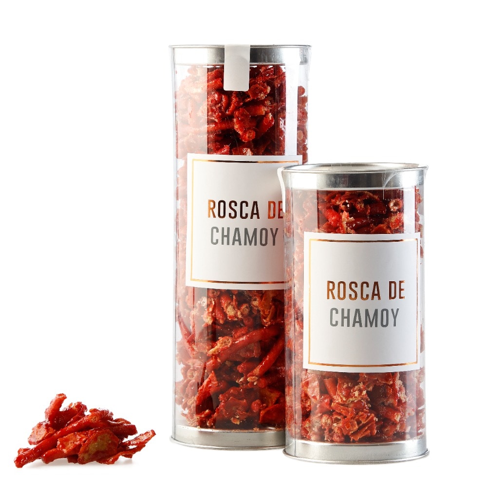 CAZARES + CHURRITOS + CARAMELO DE CHAMOY BOTE CHICO: 8.3 cm diametro x 17 cm altura, PESO: 280gr BOTE GRANDE: 8.3 cm diametro x 24 cm altura, PESO: 410gr
