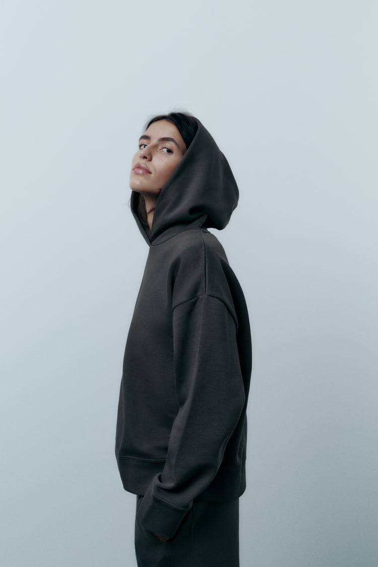 Sudadera confeccionada con algodón. Capucha y manga larga. Acabados en rib combinado a tono